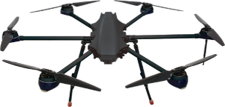 该机为大载重、系留型六旋翼无人机。依托系留供电设备,有效续航时间大于24 小时,有效克服电动无人机续航时间短的缺陷;最大载重13公斤,并预留多种任务挂载接口,可实现功能扩展;主要用于反恐处突、治安维稳、交通疏导、立体防控等执法执勤任务。